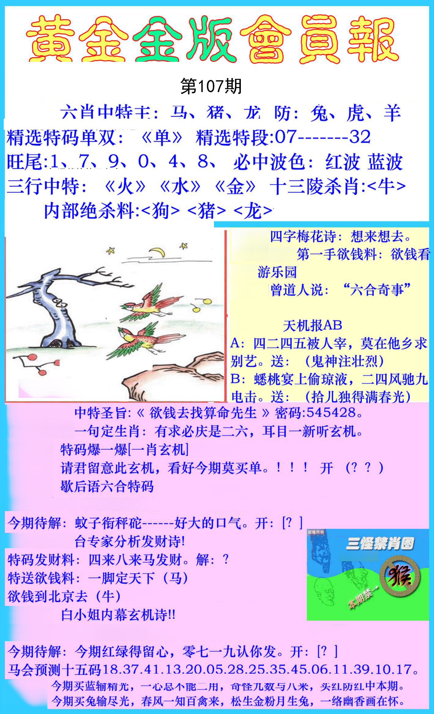 107期绝杀中特【虎肖-2头-7尾-单数】开?00 |
