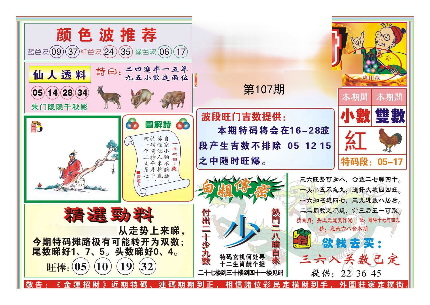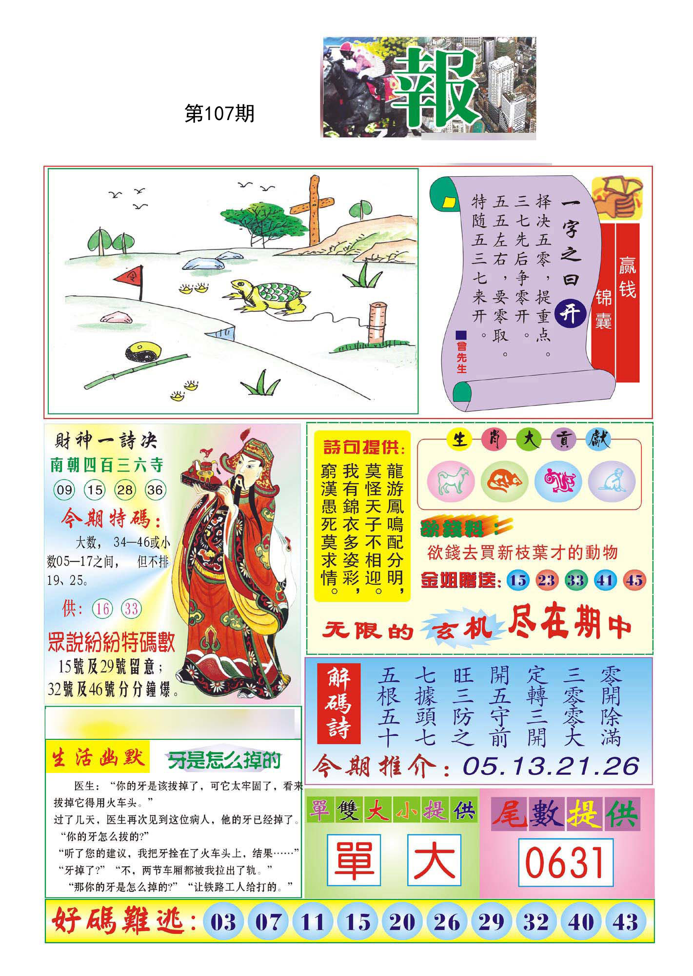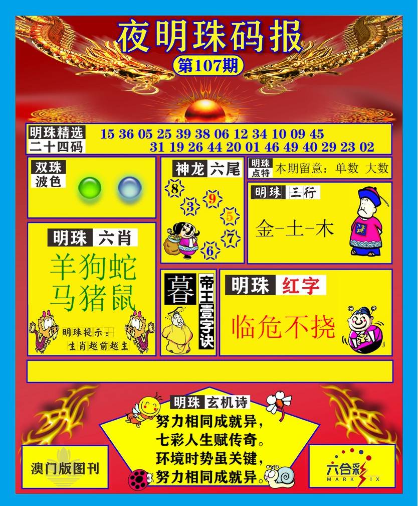 | 107期: 港澳新彩今晚22:30分开彩,祝君中奖 |