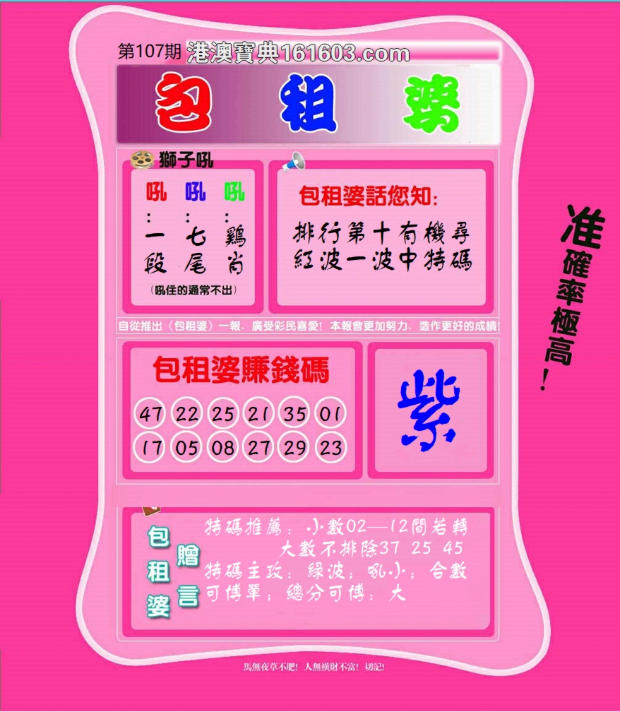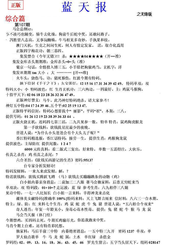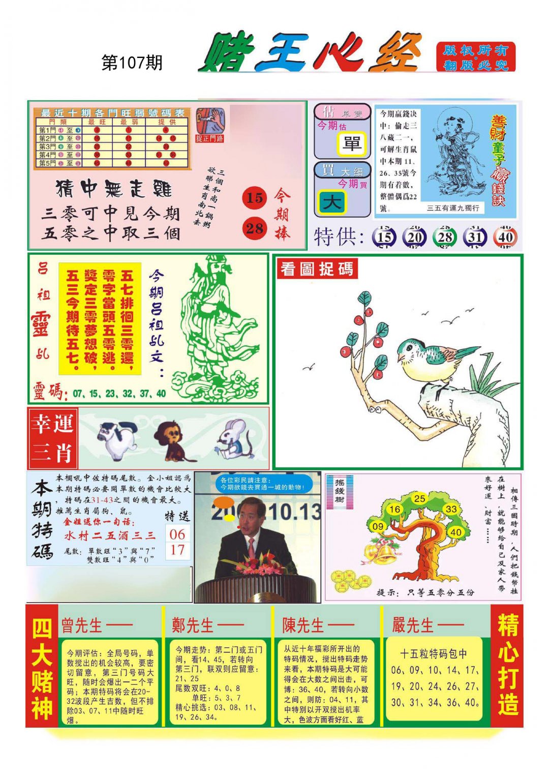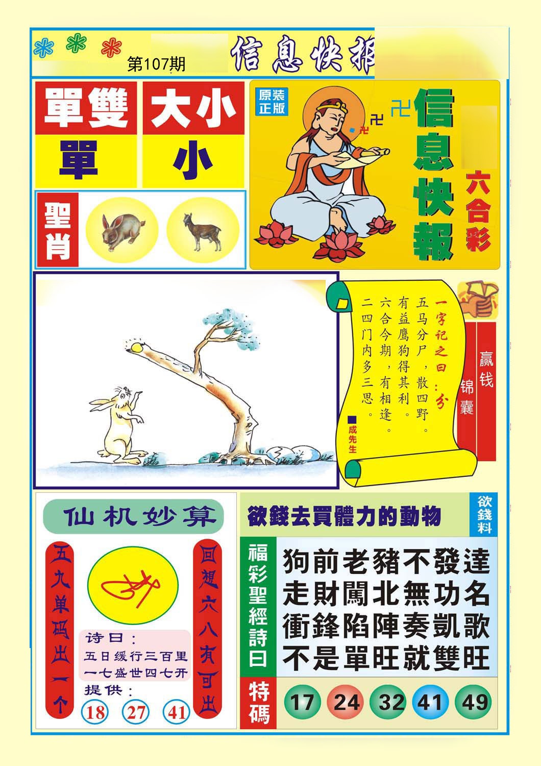 | 107期: 港澳新彩今晚22:30分开彩,祝君中奖 |
